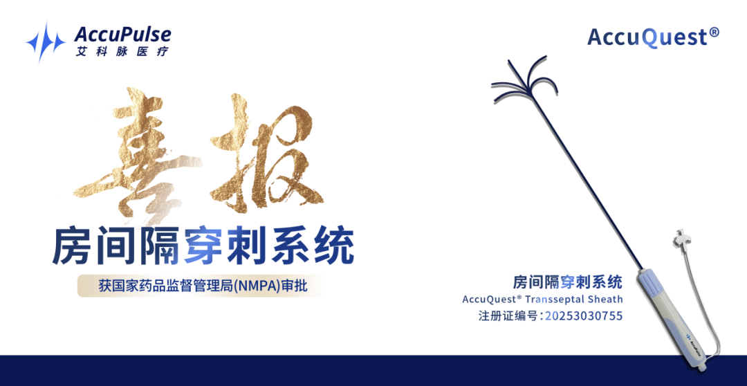 艾科脉医疗自主研发的房间隔穿刺系统(AccuQuest® Transseptal Sheath)正式通过国家药品监督管理局(NMPA)审批。