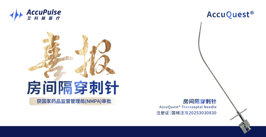 艾科脉医疗自主研发的房间隔穿刺针(AccuQuest® Transseptal Needle)正式通过国家药品监督管理局(NMPA)审批。